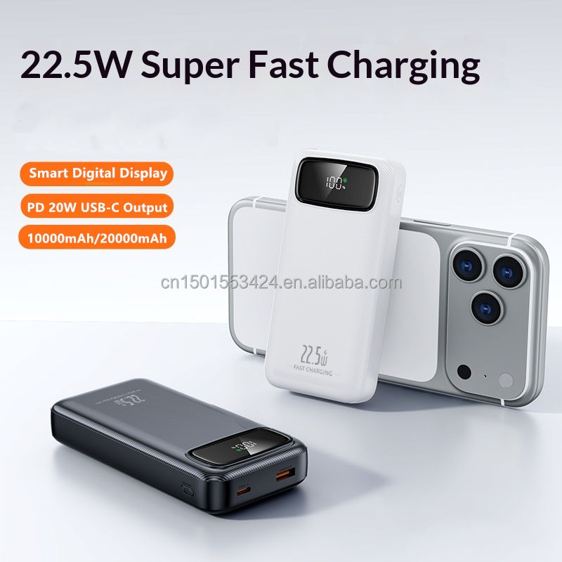 Batterie externe 20000mAh, charge rapide 22.5W, PD 20W, chargeur portable, sortie Type-C, écran LED, batterie externe idéale pour les voyages