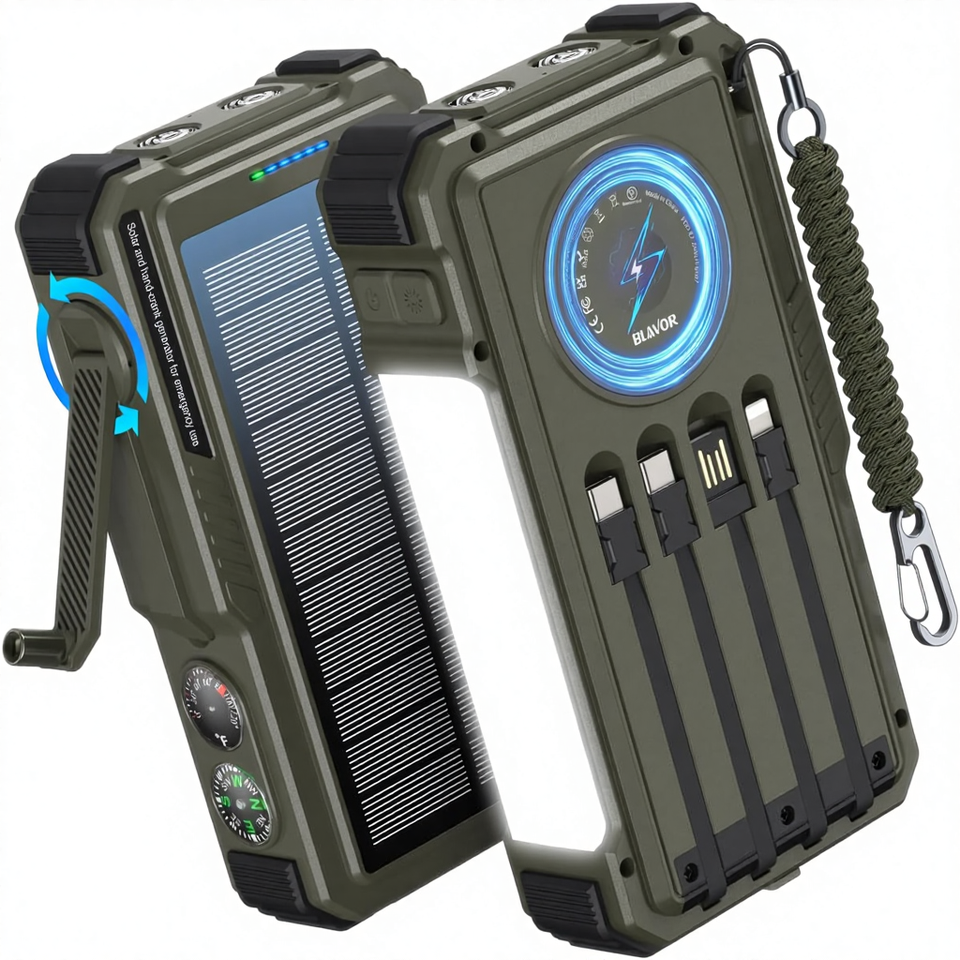Haute Capacité, Portable, Chargeur sans fil, Avec câble, Pour extérieur, Wireless charger, Hand Crank Solar Power Bank, PORTABLE