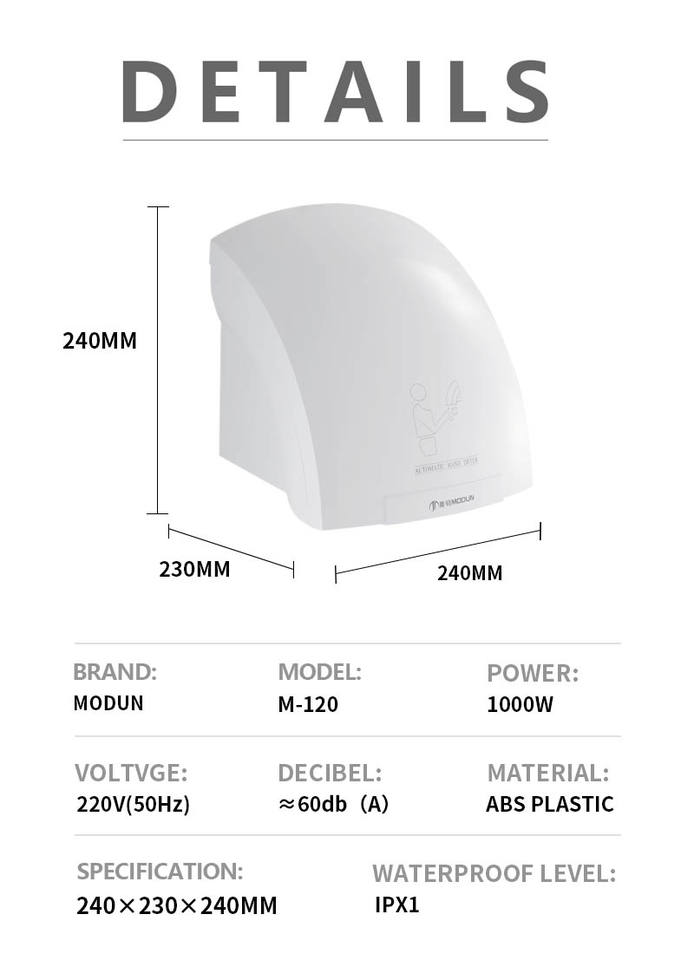 Sèche-mains électrique automatique 2000W avec capteur, en plastique ABS, pour usage commercial, hôtelier et domestique