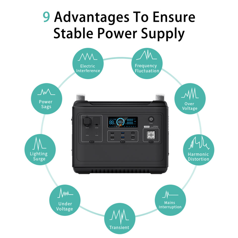 Station d'alimentation portable 2000W Batterie LiFePO4 Contrôleur MPPT Panneaux solaires Onduleur à onde sinusoïdale pure pour voiture Camping Utilisation en extérieur