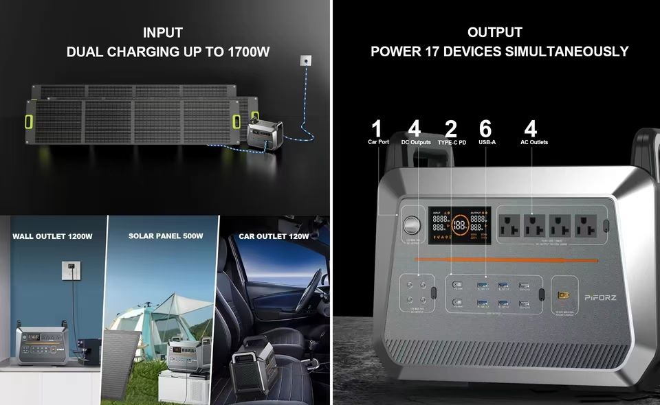 Charge sans fil, Télécommande, Type C, Lampe torche, Booster de démarrage, RV Port, Allume-cigare, Compresseur d'air