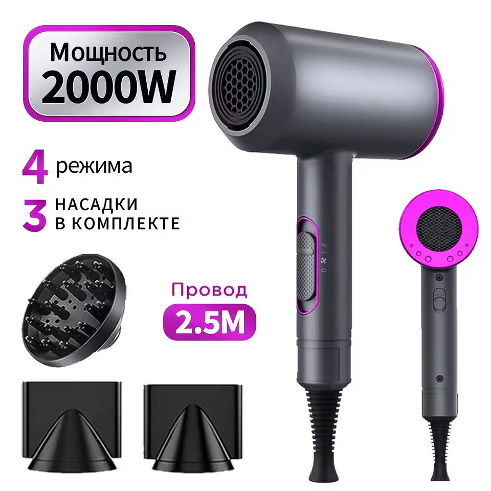 Sèche-cheveux professionnel 2000W à ions négatifs, sèche-cheveux domestique, idéal pour un cadeau