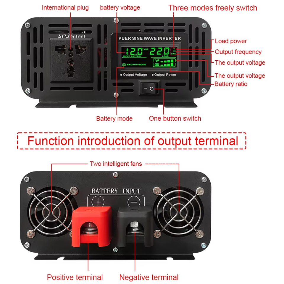 Product name:Pure Sine Wave 12V To 220V Inverter 1200W Transformer Inverter