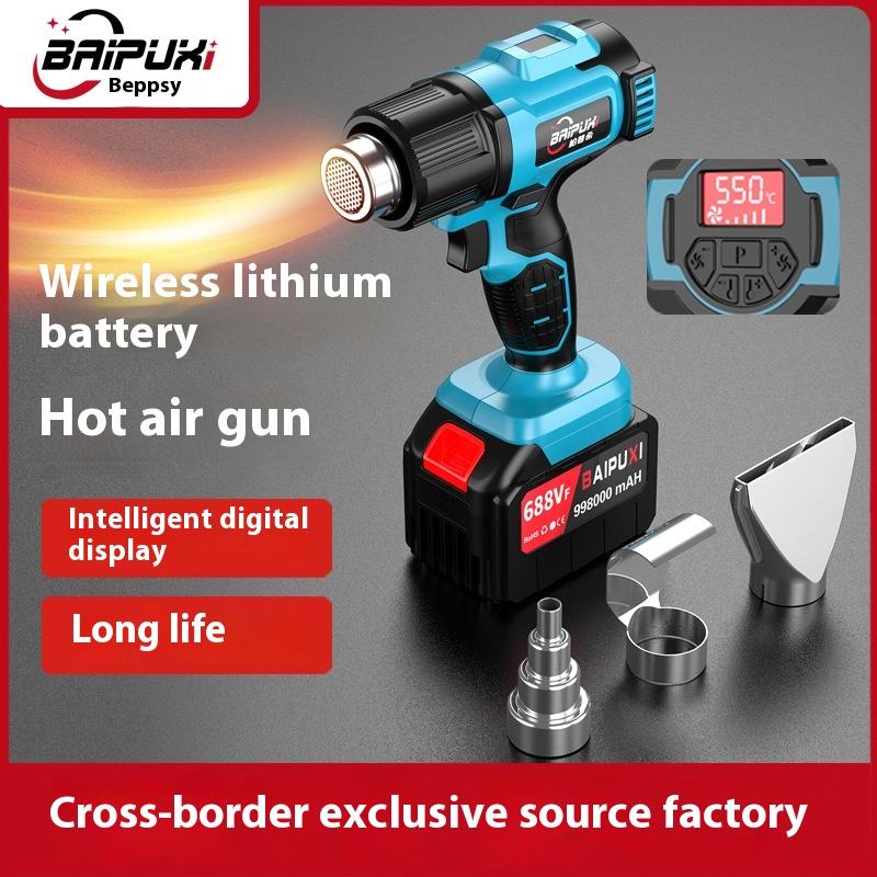 Pistolet à air chaud électrique sans fil rechargeable de 2000W avec réglage de la température pour la cuisson de films de voiture Pistolet de cuisson à chaud à batterie au lithium