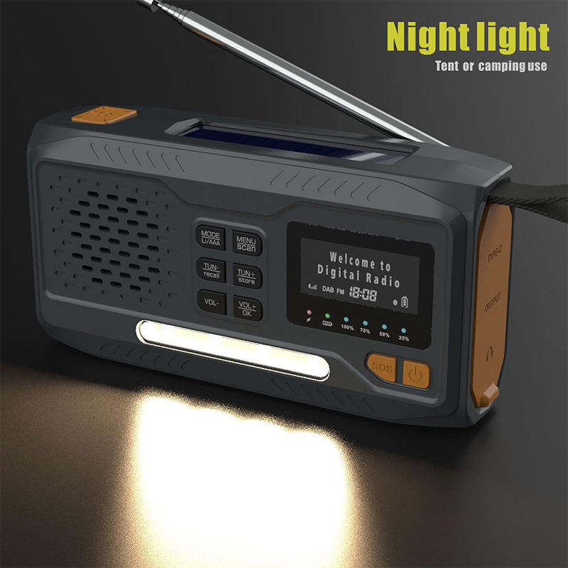 Radio solaire à manivelle 2000 mAh avec batterie externe, radio numérique DAB FM AM, affichage numérique, lampe torche, alarme, appareil d'extérieur