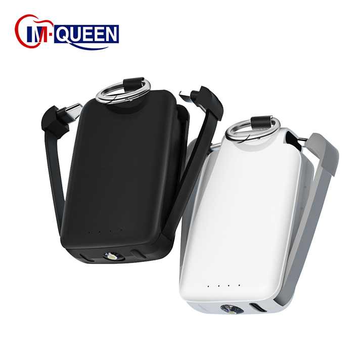 Chargeur portable mini 2000mah 4000mah, batterie externe en polymère avec câbles intégrés et lampe torche LED, alimentation mobile pour téléphone