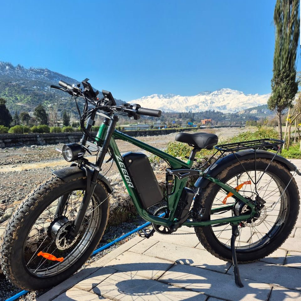 Vélo électrique tout-terrain 2000W à double moteur, pneus larges 26 pouces, batterie lithium 52V/22.4Ah, freins à disque