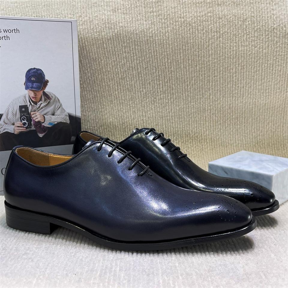 Chaussures Oxford habillées classiques de luxe faites à la main en brocart gaufré 20026 - Légères, respirantes, en cuir véritable, pour l'automne, grandes tailles