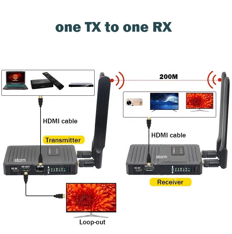 Extendeur HDMI sans fil 200M Extension vidéo sans fil 1080P Prise en charge de la transmission 1 à 4 Splitter Screen Share pour DSLR Camera HDTV PC