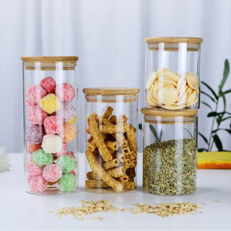 name:Candy Containers Glass Storage Jars With Bamboo Top Lid