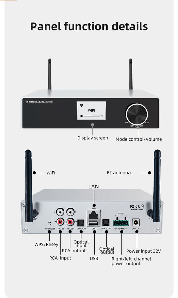 Product Name:Hi-Fi WIFI Stereo Audio Amplifier