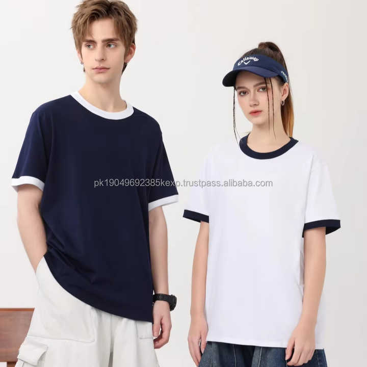 200gsm unisexe coton Ringer Tee Trendy Color Blocking Regular Fit O-Neck Shirts avec conception personnalisée 100% coton