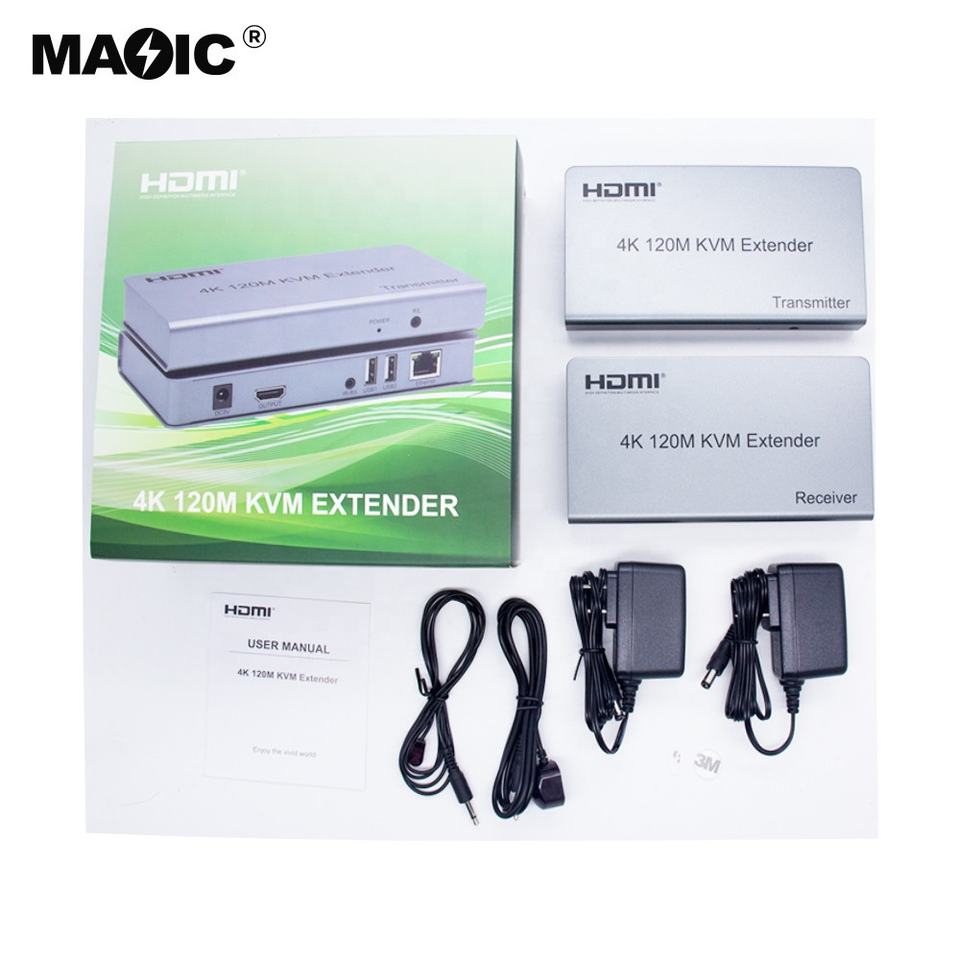 Extendeur KVM HDMI vers RJ45 LAN 4K sur IP Ethernet Cat6e 200m 120m, Transmetteur Récepteur HDMI Tx Rx avec IR