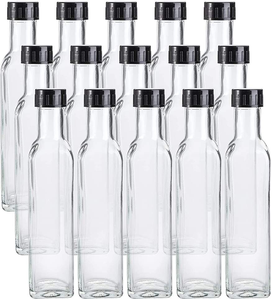 Bouteilles en verre de forme carrée de 200ml 250ml pour la cuisson de sauce piquante Sirop d'huile de palme d'olive Vinaigre de fleur de noix de coco Gelée à vis anti-fuite