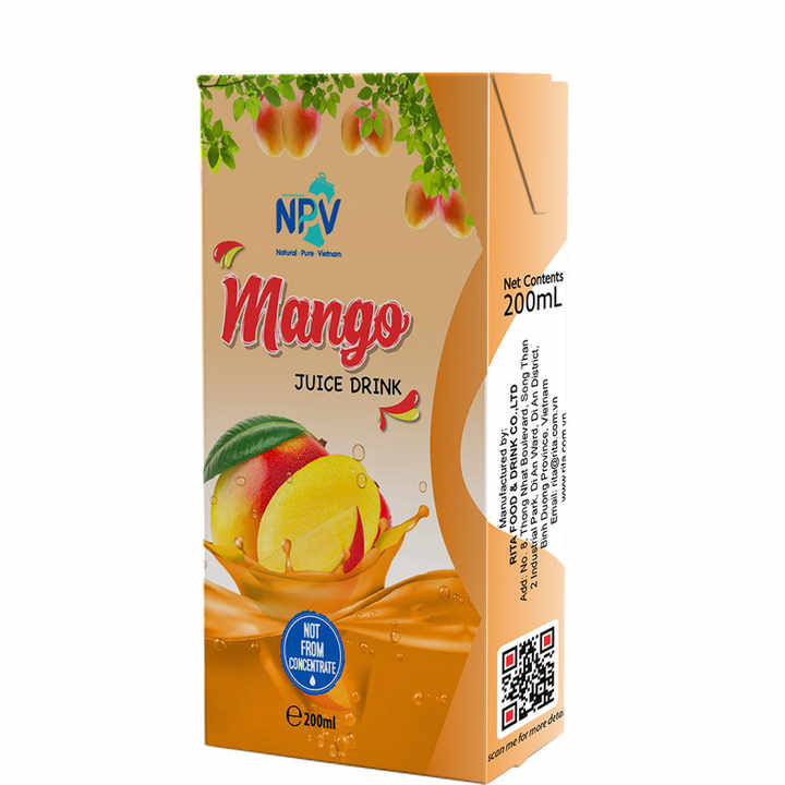 Nom du produit:Boisson de jus de mangue Boîte de papier 200ml