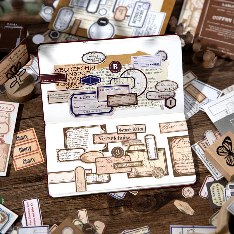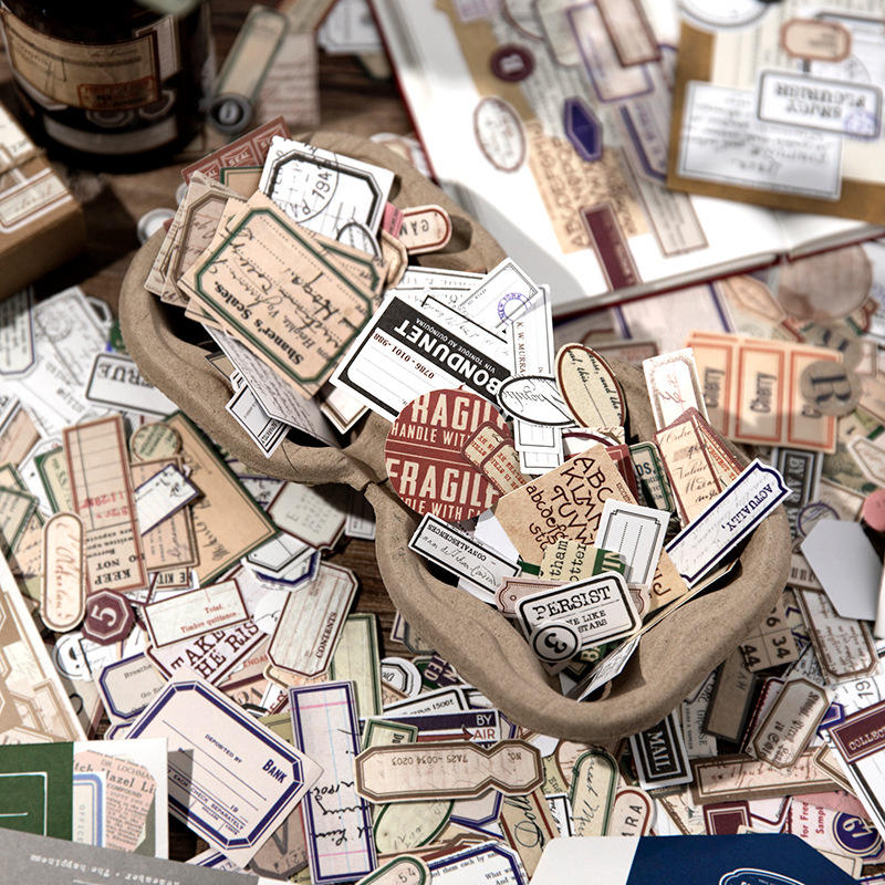 200 feuilles/paquet étiquette première série étiquette bâton sac en papier rétro fond Collage décoration carnet Message autocollants 5 modèles