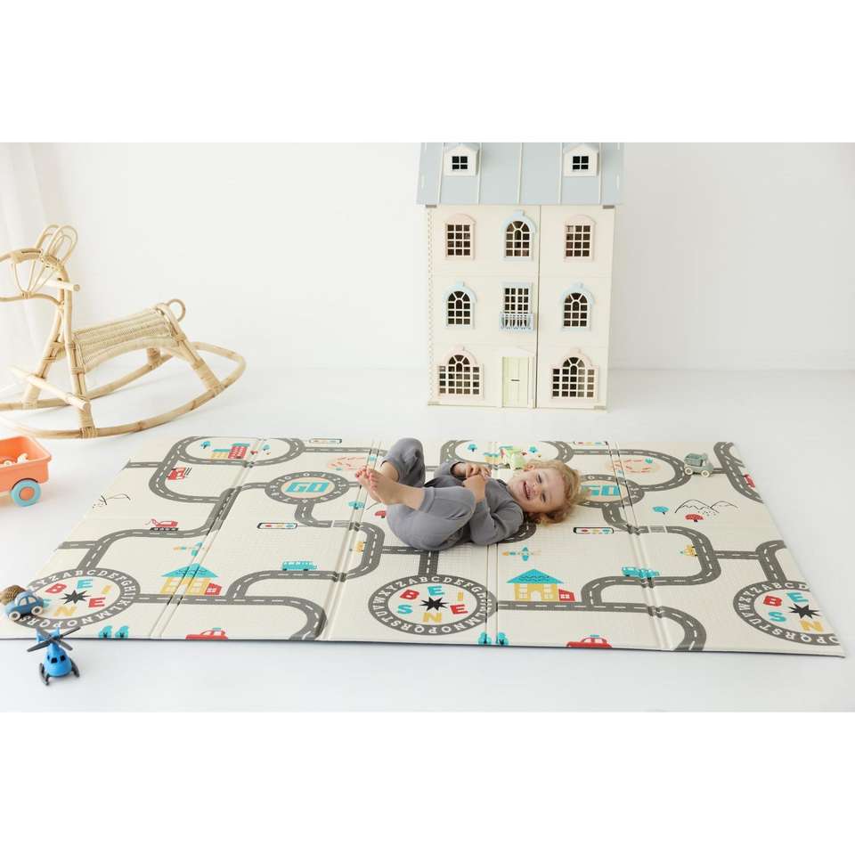 200x140x0,7 cm Tapis de jeu XPE simple face pour bébé-Course de voiture en mousse non toxique, imperméable et enroulable