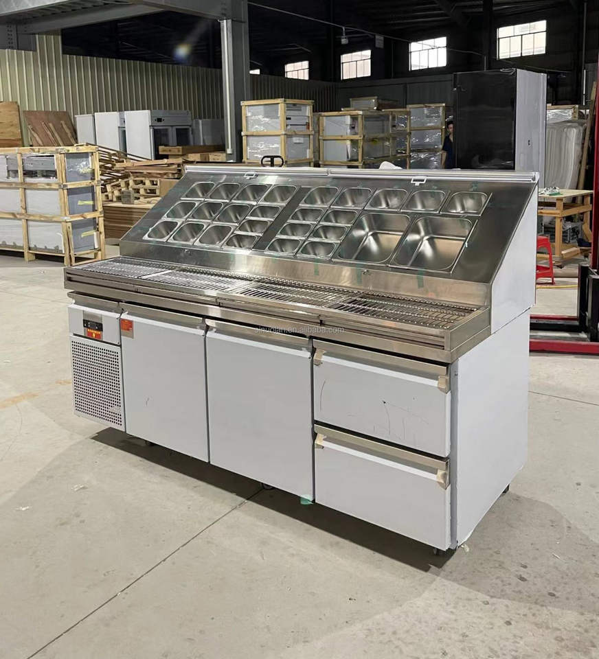 Nom du produit:Tables de préparation professionnelles personnalisées, réfrigérateur, pizza en acier inoxydable