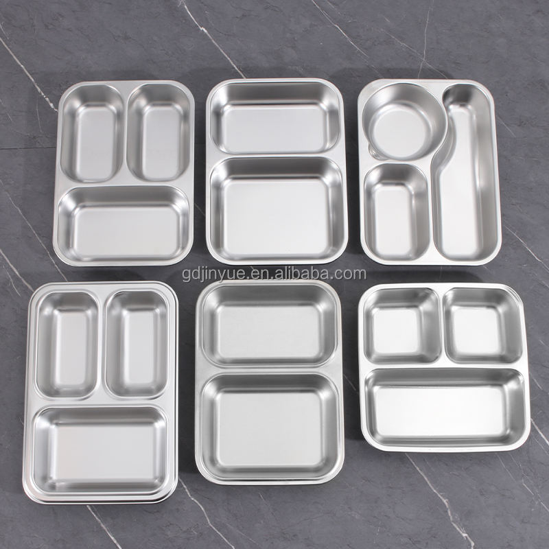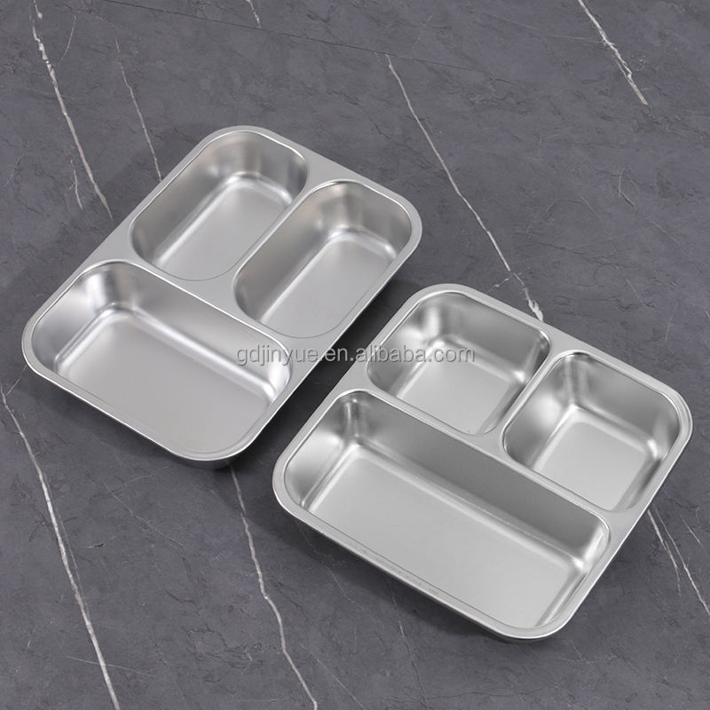 Assiette creuse en acier inoxydable 201, assiette à riz divisée, boîte à lunch pour la maternelle, couleur unie, design moderne et simple