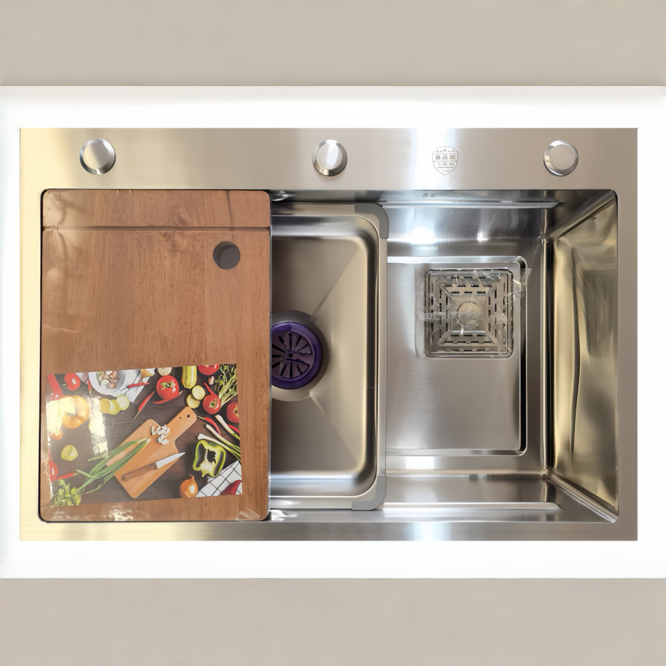 Évier de cuisine à double niveau en acier inoxydable 201, épaisseur 3,0 mm, finition brossée, options de couleur noir et gris