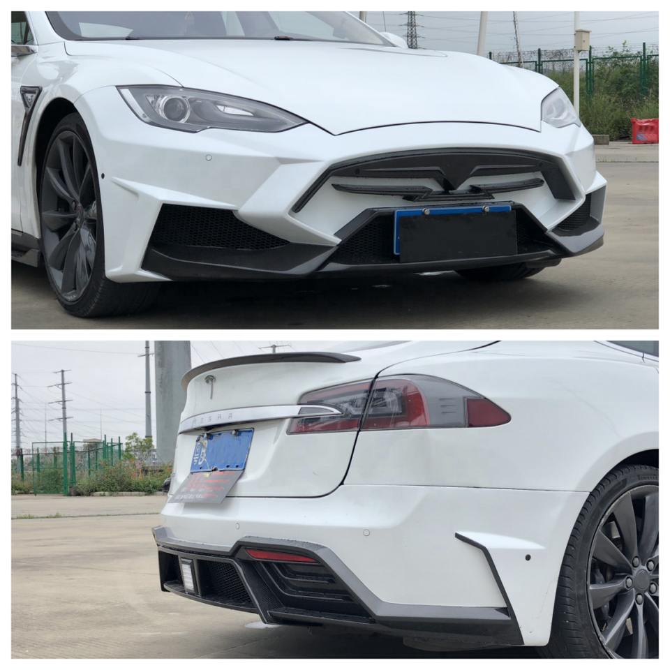 Kit de carrosserie en fibre de carbone pour Tesla Model S 2014-2020, style amélioré, pare-chocs avant et arrière, jupes latérales, spoiler, lame d'air