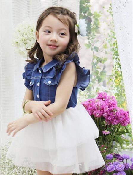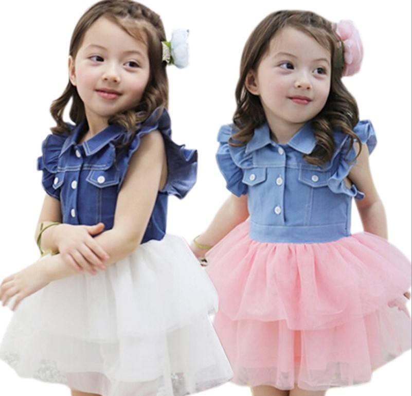 Nom:Robe pour filles 2015, nouveau design, denim et dentelle