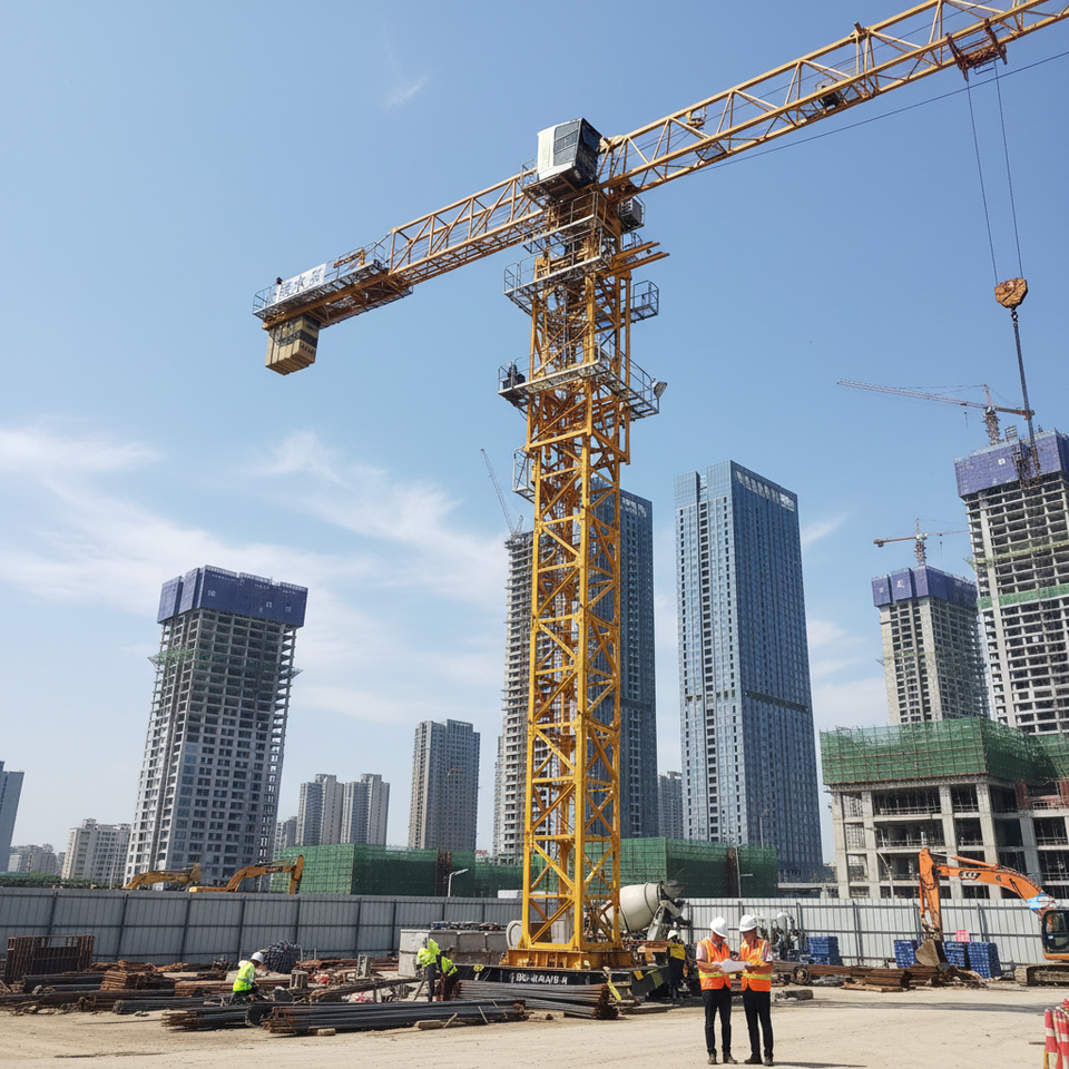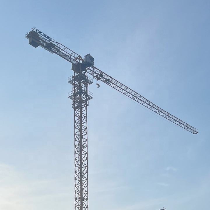 Grue à tour à flèche plate d'occasion certifiée ISO 2019-2022, flèche de 75 m, capacité de levage de 12 t, bon état de fonctionnement