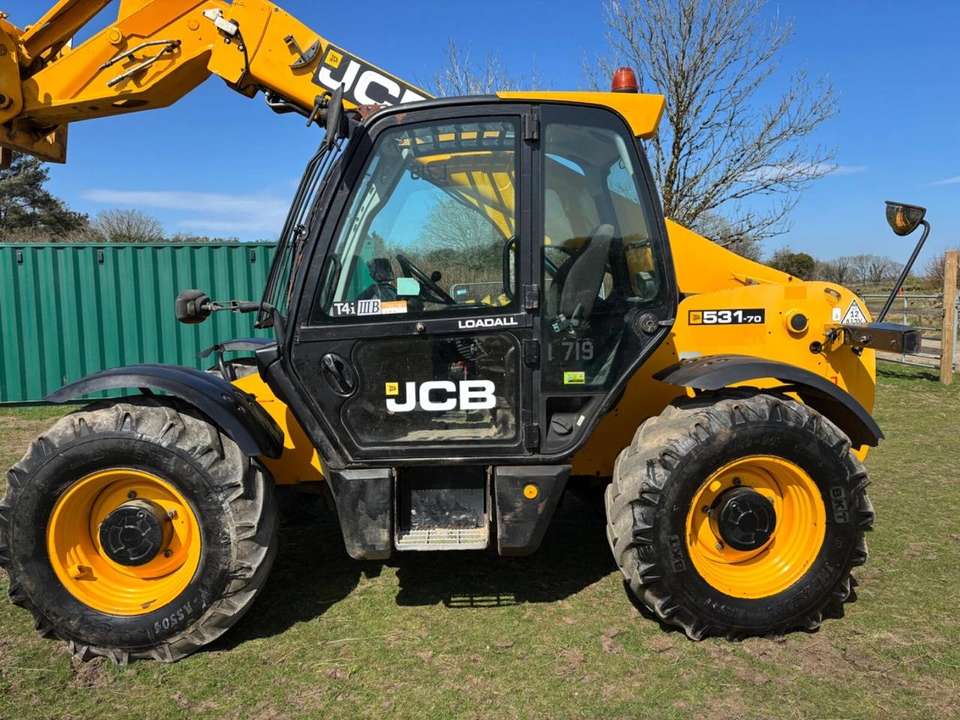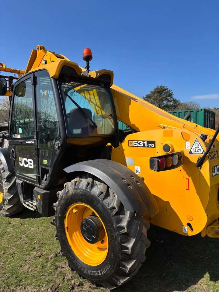 Chariot télescopique JCB 531-70 de 2019, machine de levage pour la construction, hauteur de levage de 17 m, pompe hydraulique en acier et moteur haute performance