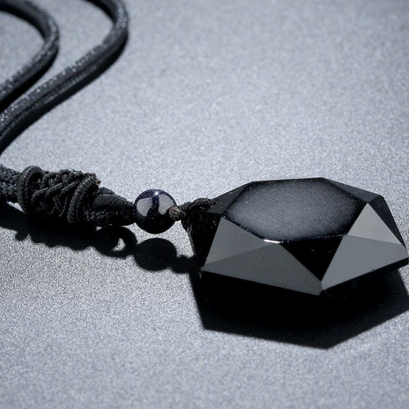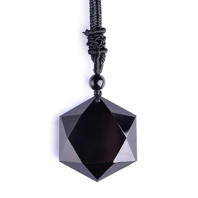 Collier pendentif hexagramme cubique en obsidienne naturelle simple 2019, amulette d'énergie porte-bonheur, collier en obsidienne noire