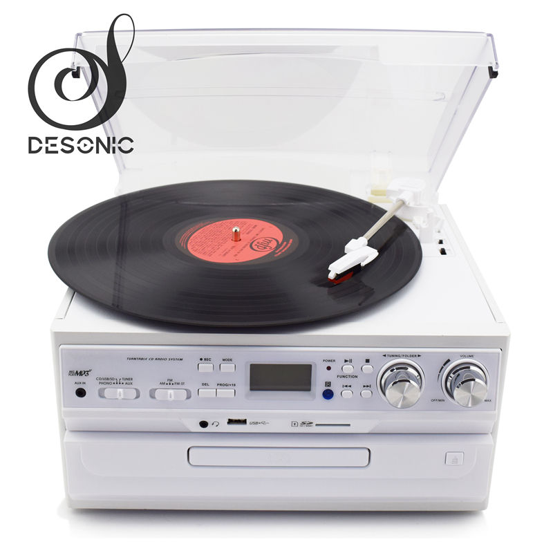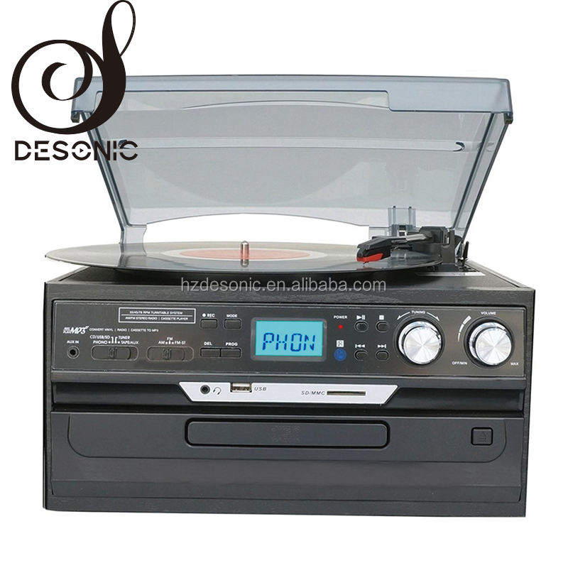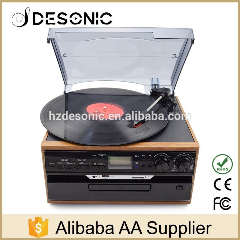 2019 top vente cd usb bt platine tourne-disque vinyle MP3 d'encodage gramophone avec radio cassette