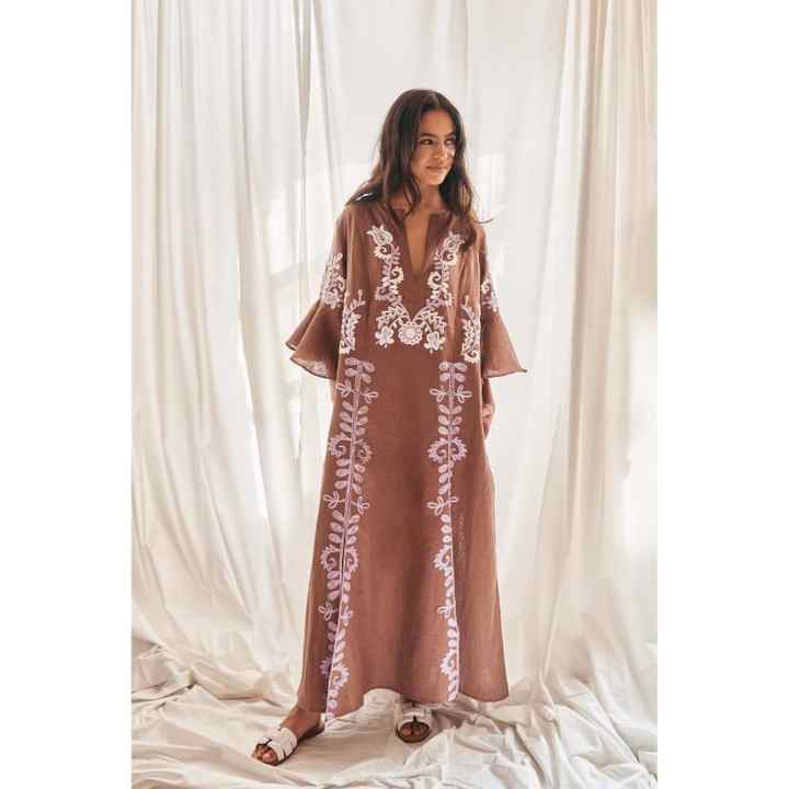 202 nouveauté Style Boho et confort femmes élégant grande taille brodé travail à manches longues plage élégance Maxi robes