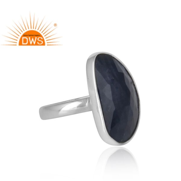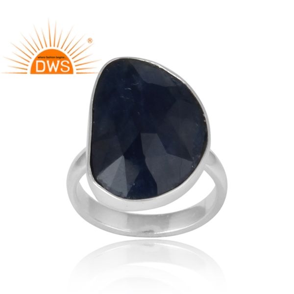 Bague tendance en argent sterling massif indien, sertie de saphir bleu, design 2020, pour soirée