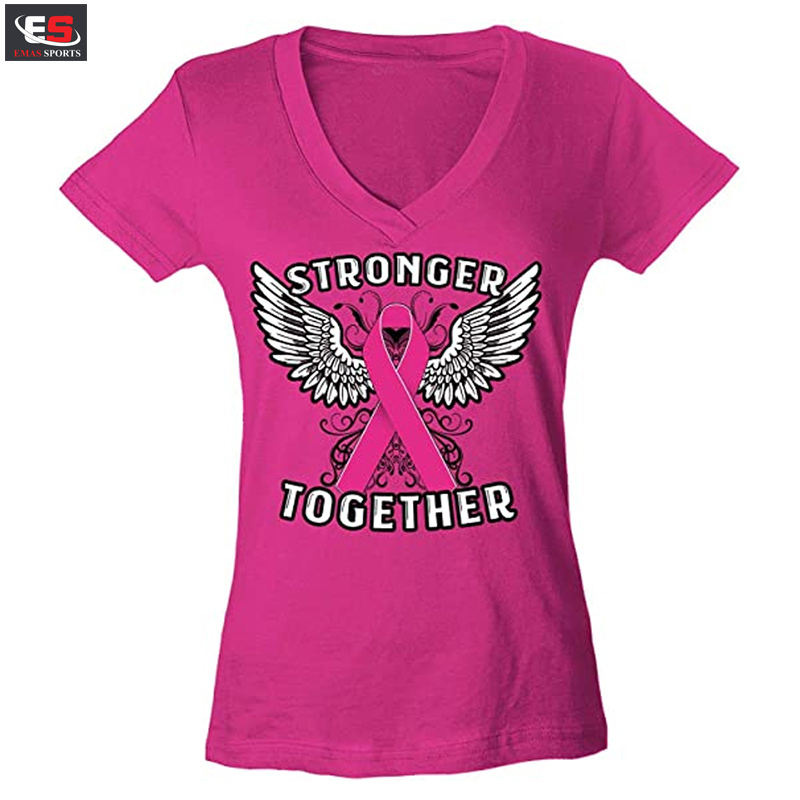 2020 dernière Conception de Ruban De Cancer du sein Sensibilisation Rose T-Shirt femme Col V