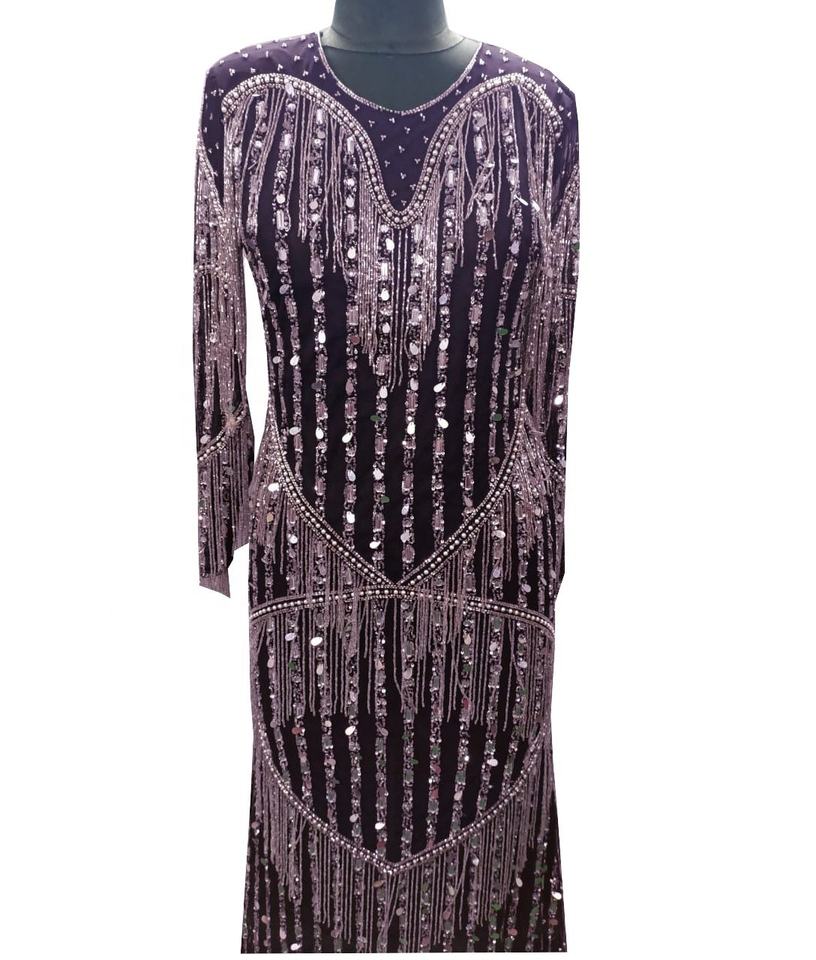 Robe de soirée brodée à la main de vin, robe à franges avec des perles, 2020