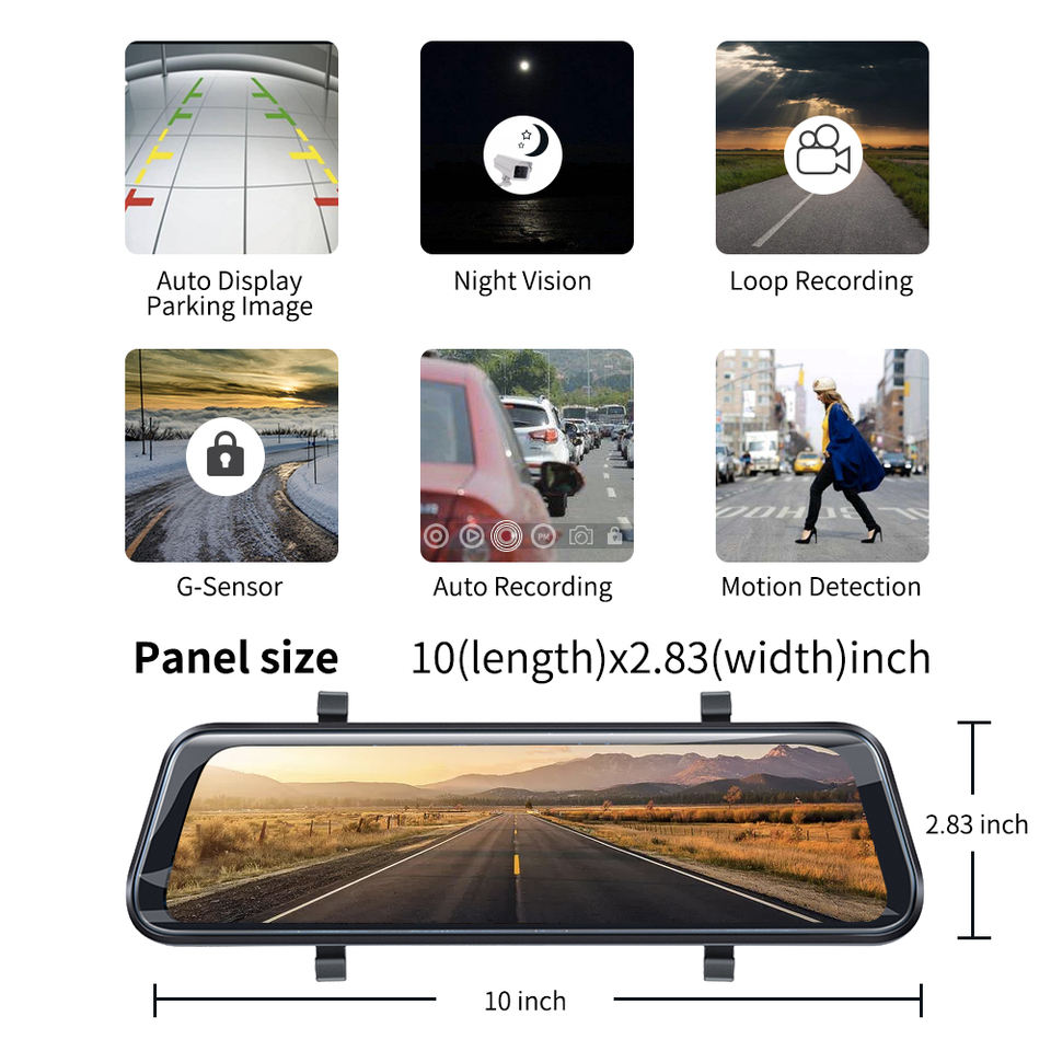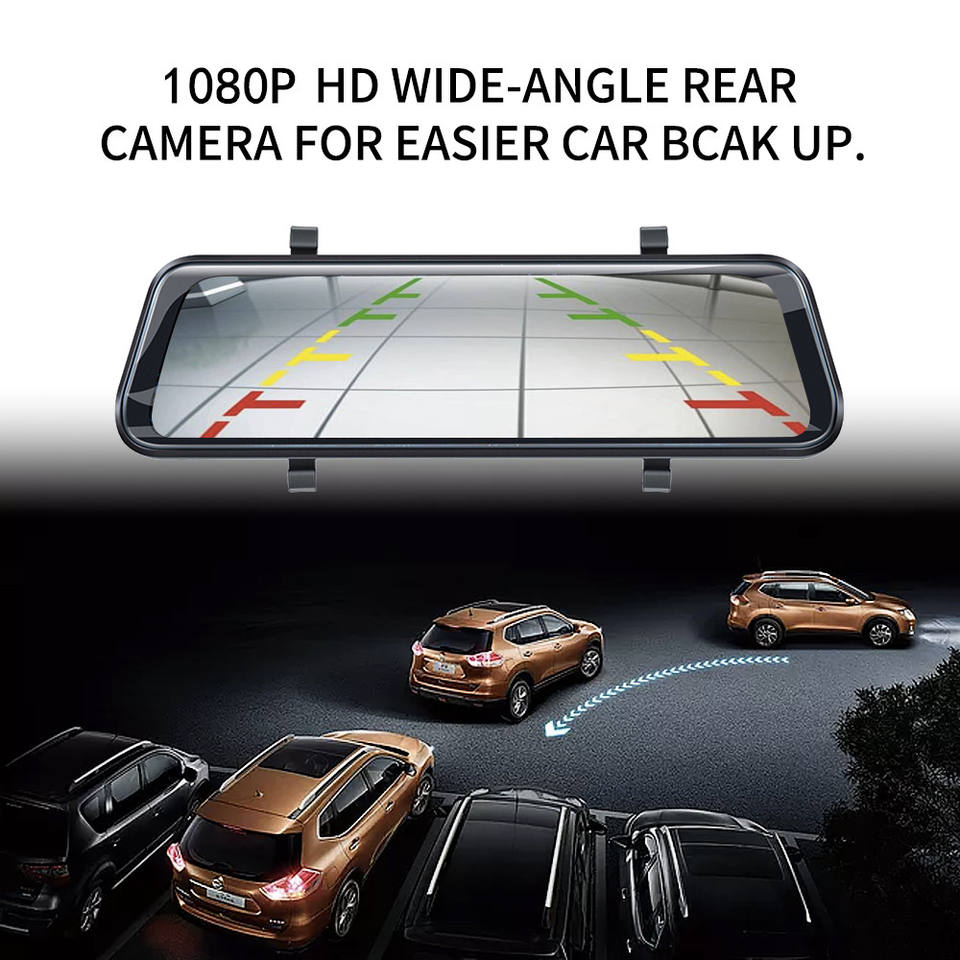 Caméra de recul 2020, écran tactile complet de 10 pouces, 1080P, caméra de tableau de bord miroir, caméra avant et arrière, double objectif avec vidéo HD
