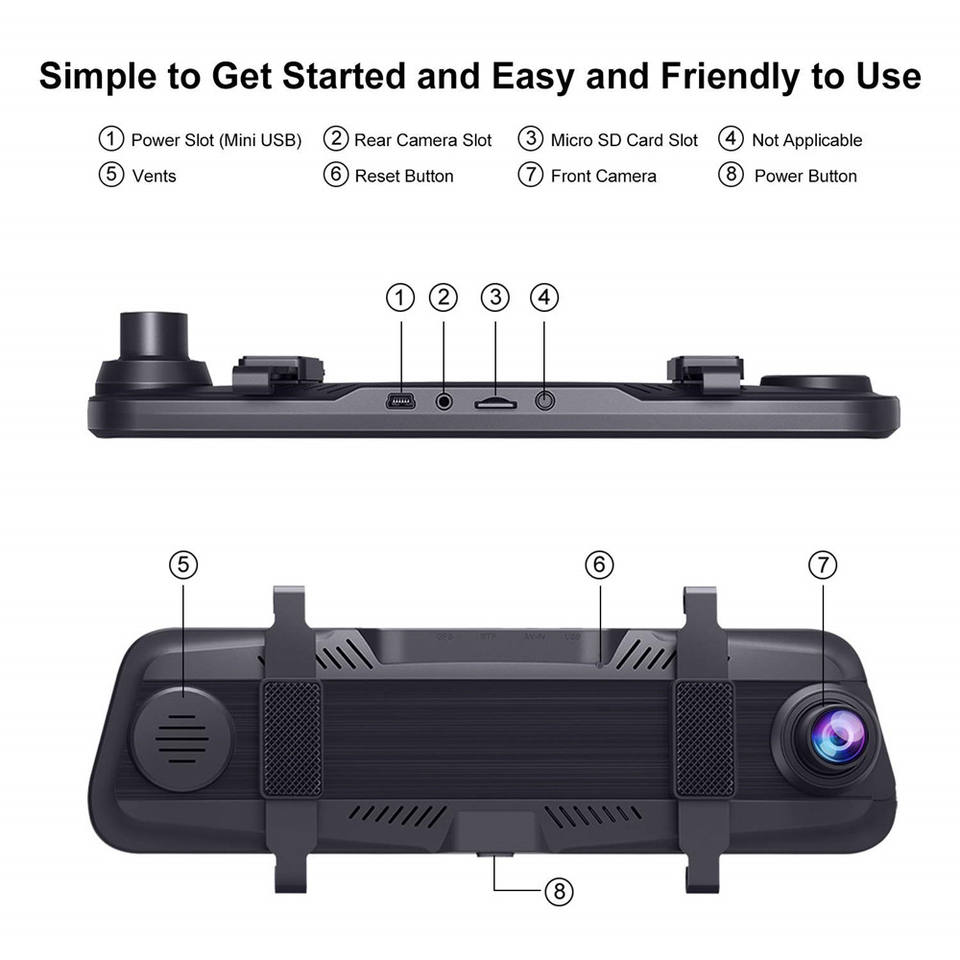 Type:Enregistreur vidéo, Double objectif, Caméra de bord, Enregistreur de données d'événement (EDR), Rétroviseur Caméra