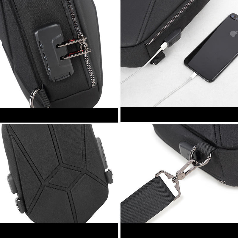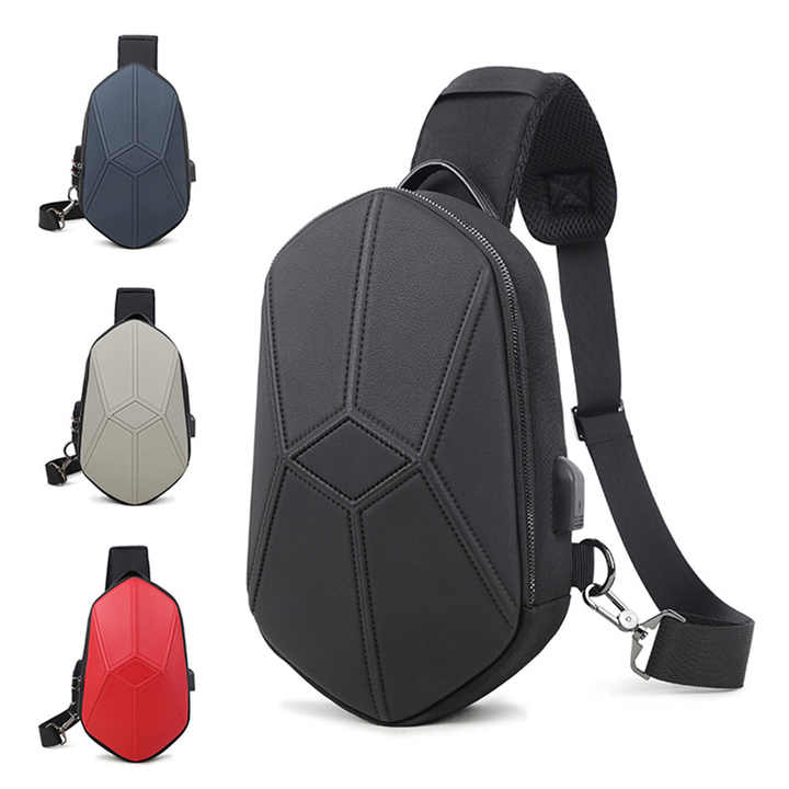 USB Port Hard Shell Mens Crossbody Chest Sling Bag With LockProduct name