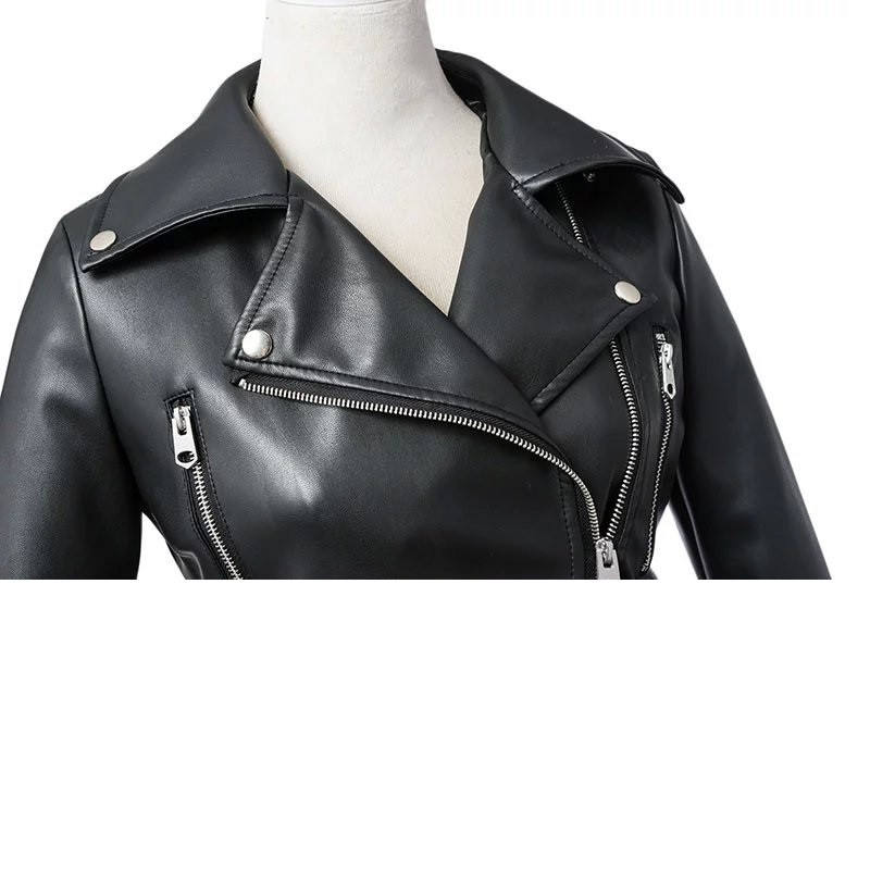Product name:Women Autumn Winter Black Faux Leather Jackets