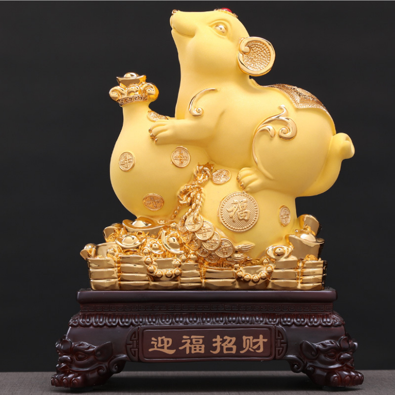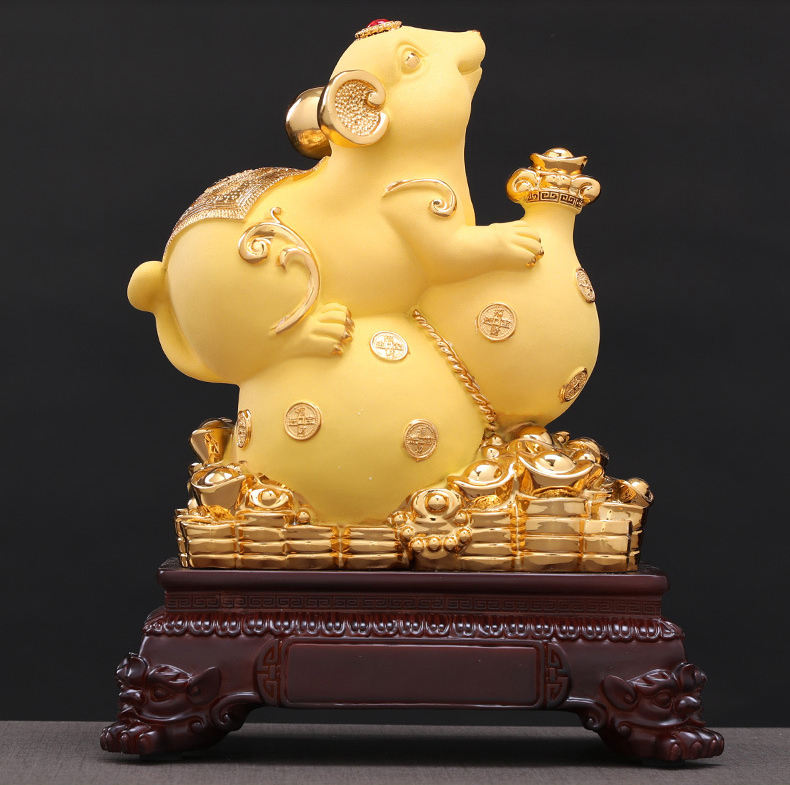 2020 New Year Business Gift Gold Plated Resin 12 Chinese Zodiac Decorated Rat Figurine