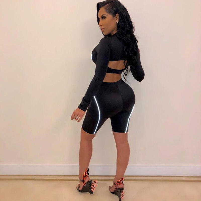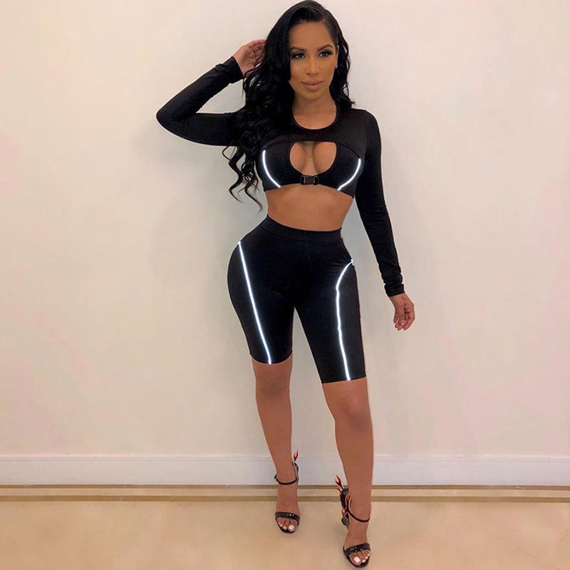 2020 Taille haute Short Moulant Rue Bande Réfléchissante D'été Femmes Costume de Soirée Ensemble