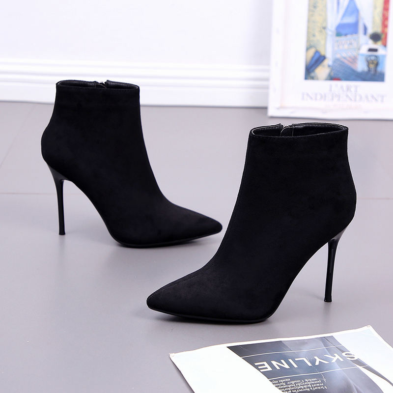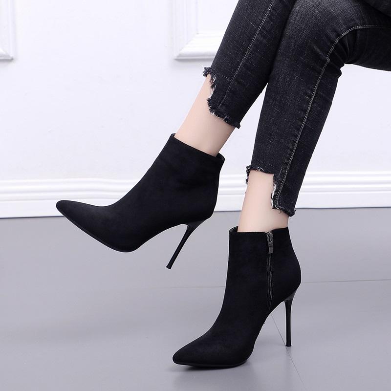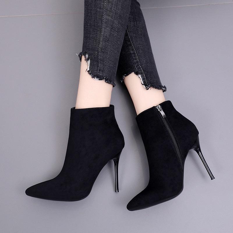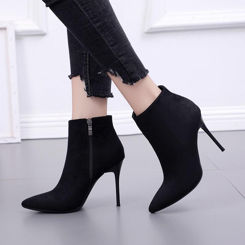 Collection Automne-Hiver 2021 : Bottines en Daim à Talon Haut Style Européen et Américain, Fermeture Éclair, Respirantes, Élégantes, Talon Fin, Bout Pointu