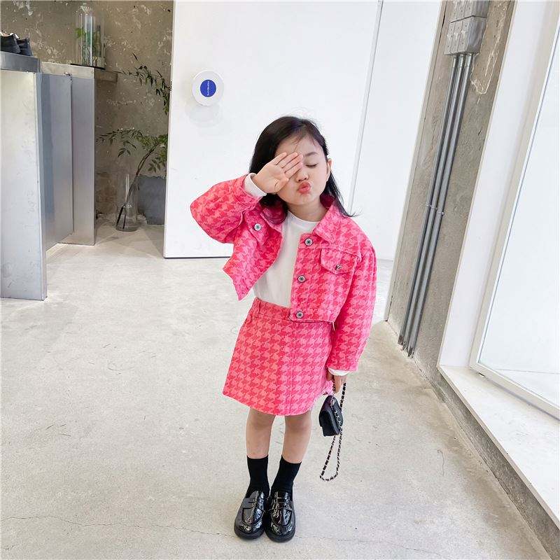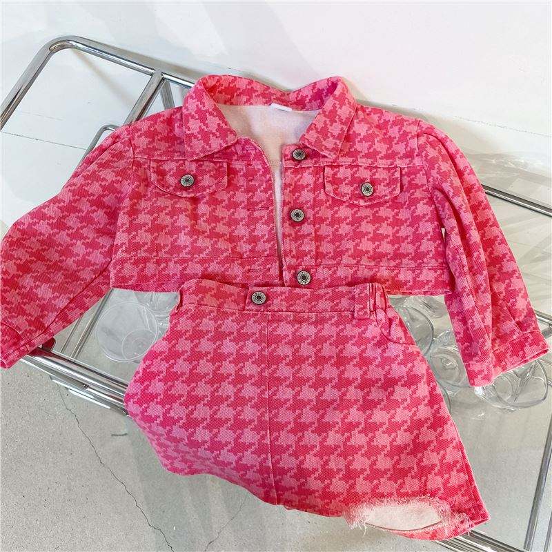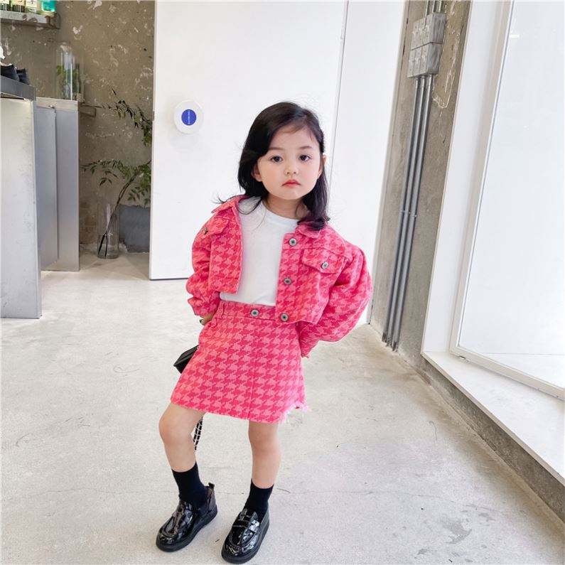 2021 automne bébé enfants fille 2 pièces Denim vêtements ensemble mode Style coréen enfant en bas âge fille rose imprimé veste + jupe 1-6T
