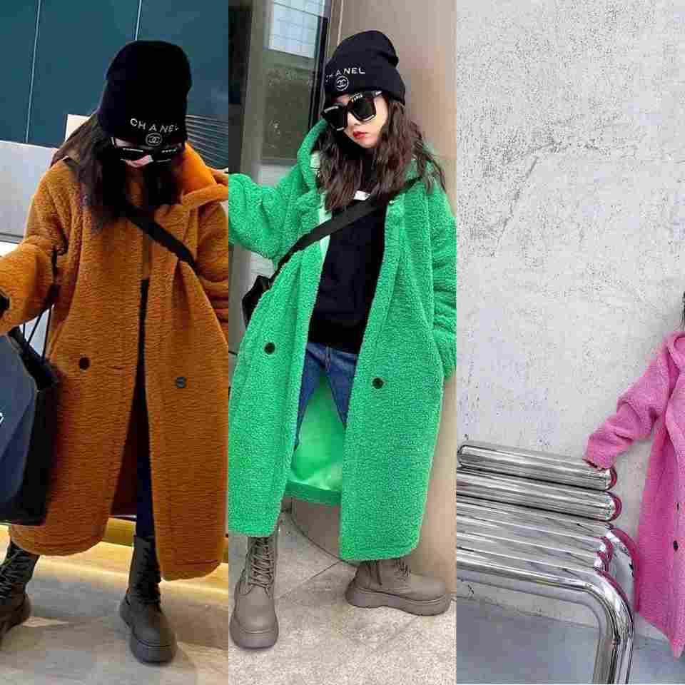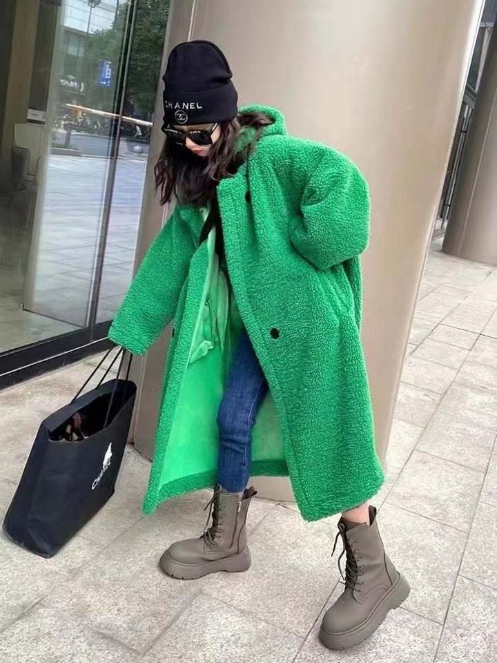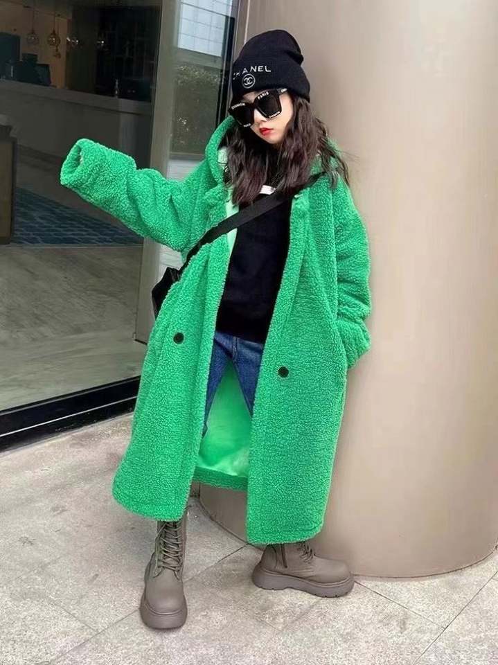 Veste en laine pour bébé et enfant, marron vert uni, automne-hiver 2021, manteau long pour fillette, vêtements en fourrure, M21231087