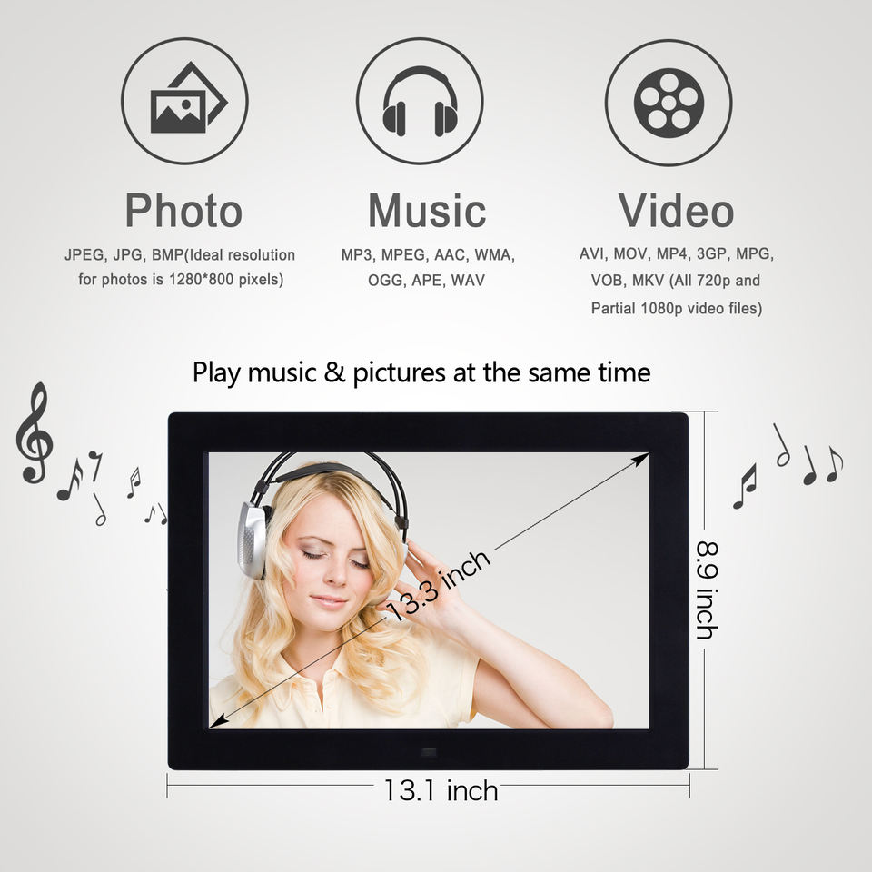 Grand cadre photo numérique HD multifonction, grand format, 2021 pouces, offre spéciale, 13.3