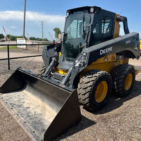 Chargeuse compacte sur pneus John 332G 2021 avec moteur diesel Perkins, boîte de vitesses PLC haute efficacité, garantie 3 ans, 45