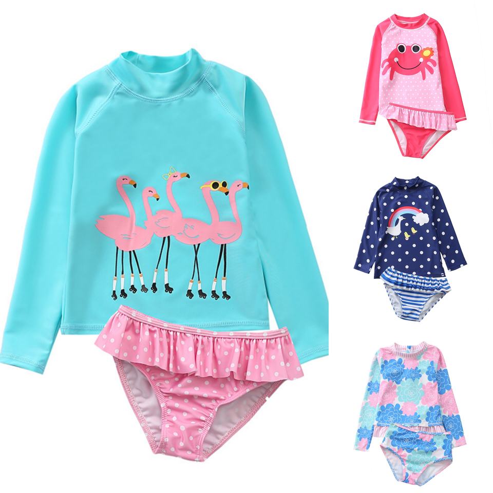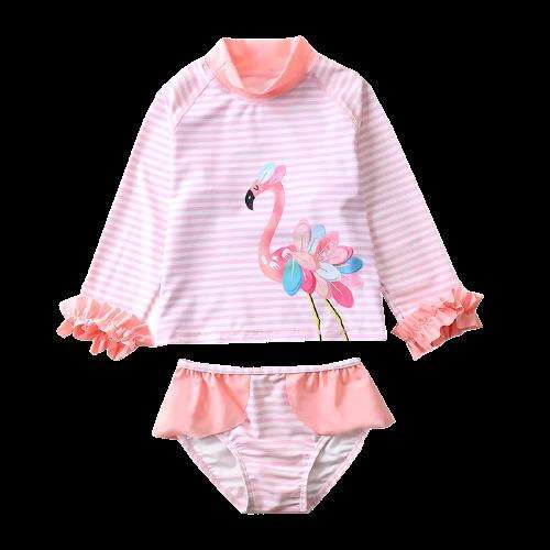 Maillot de bain deux pièces pour filles, haut sans manches et short, respirant, imperméable, imprimé flamant rose, vêtements de plage ananas pour enfants, 2021