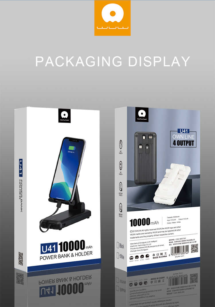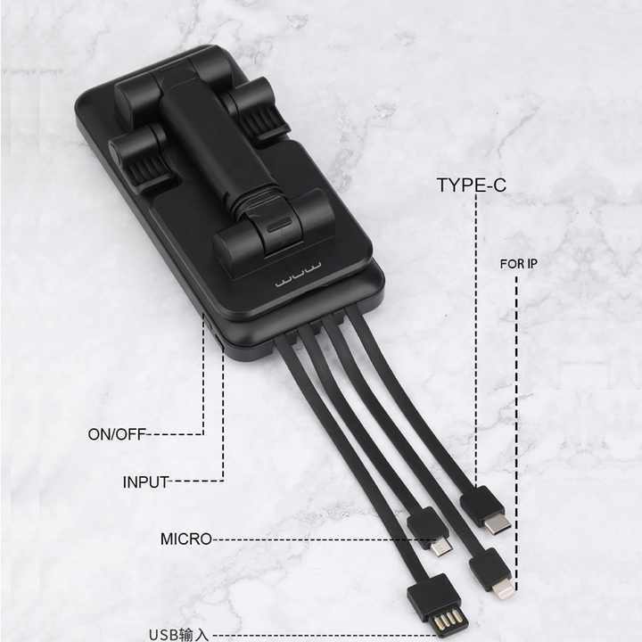 2021 New Arrival Best Selling Built-in Cable Luxury Power Bank 10000mah with Holder Design