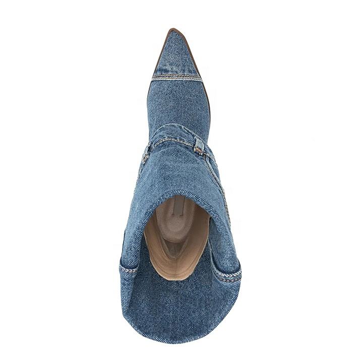2021 New Arrival High Quality Denim Point Toe Ankle Boots Famous Designer Sexy Thick Heel Blue Denim Women Boots
