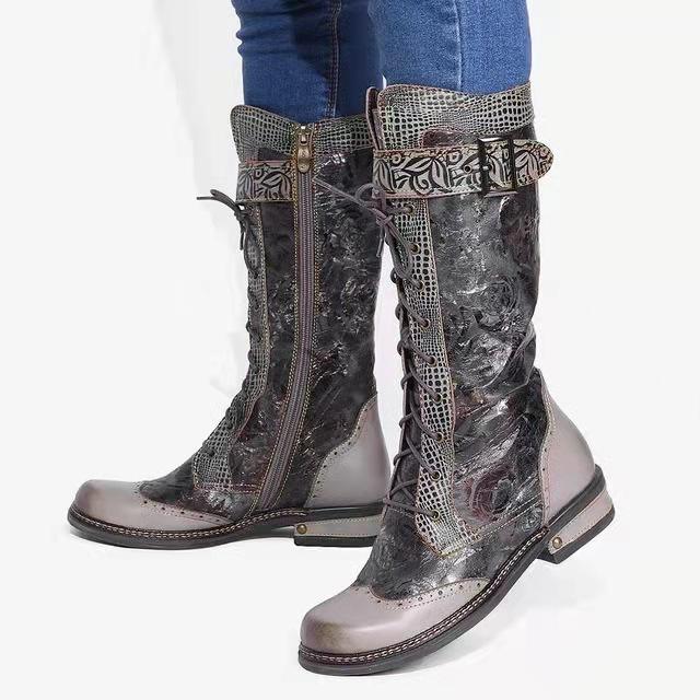 2021 New Arrival Hot Sale Boots Ethnic Style Vintage Mid Heel Women's Over-the-Knee Boots