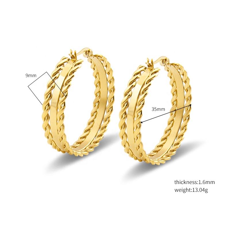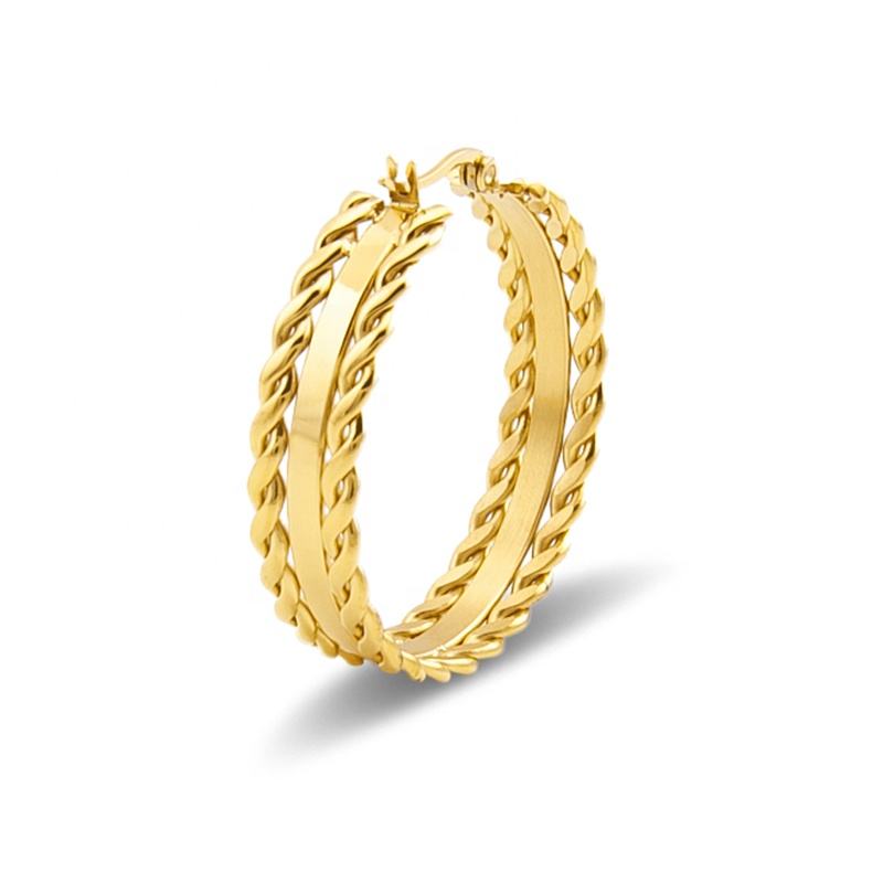 2021 New Arrival Stainless Steel Gold Plated Twisted Curb Chain Large Circle Creole Hoop Earrings